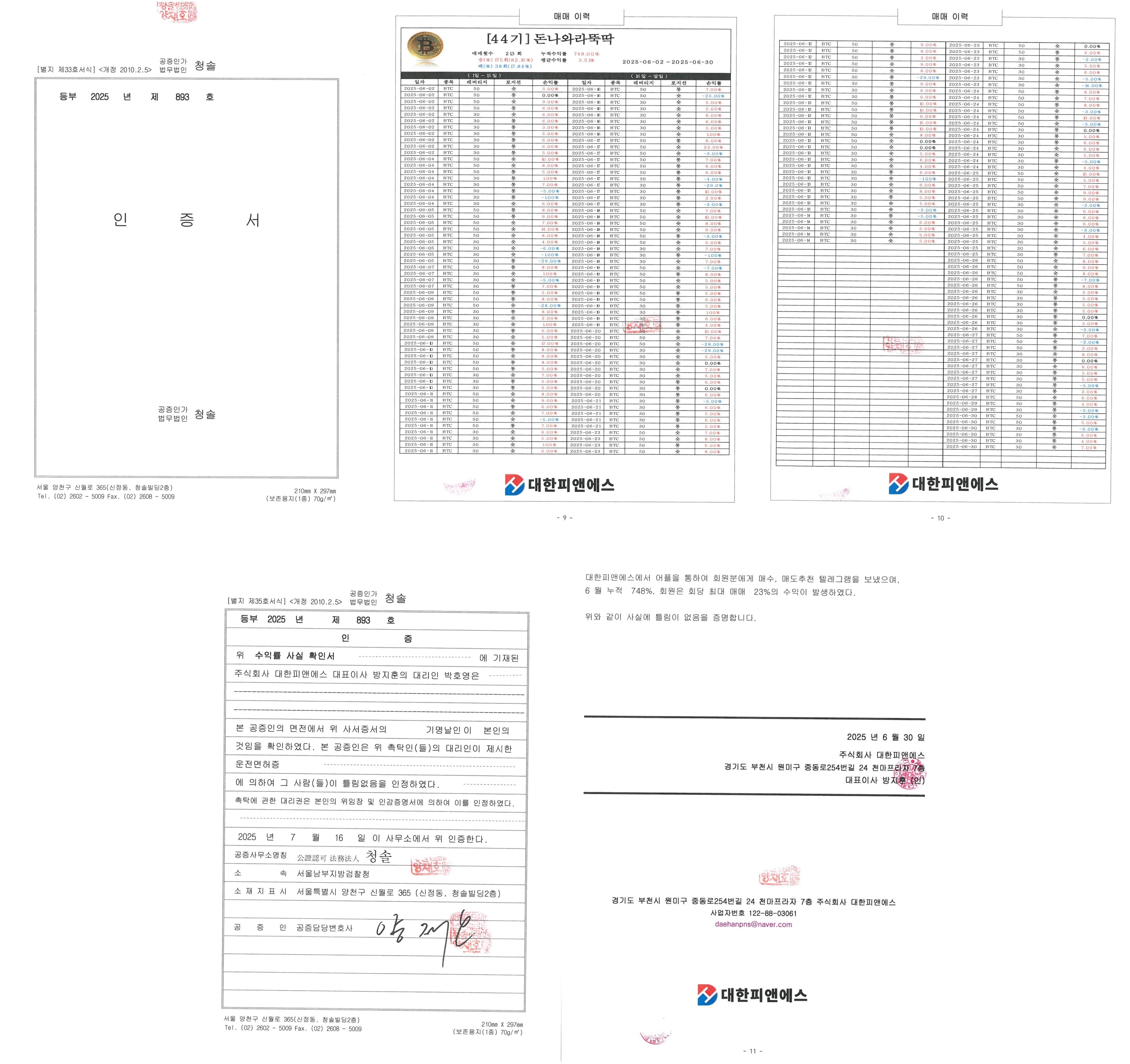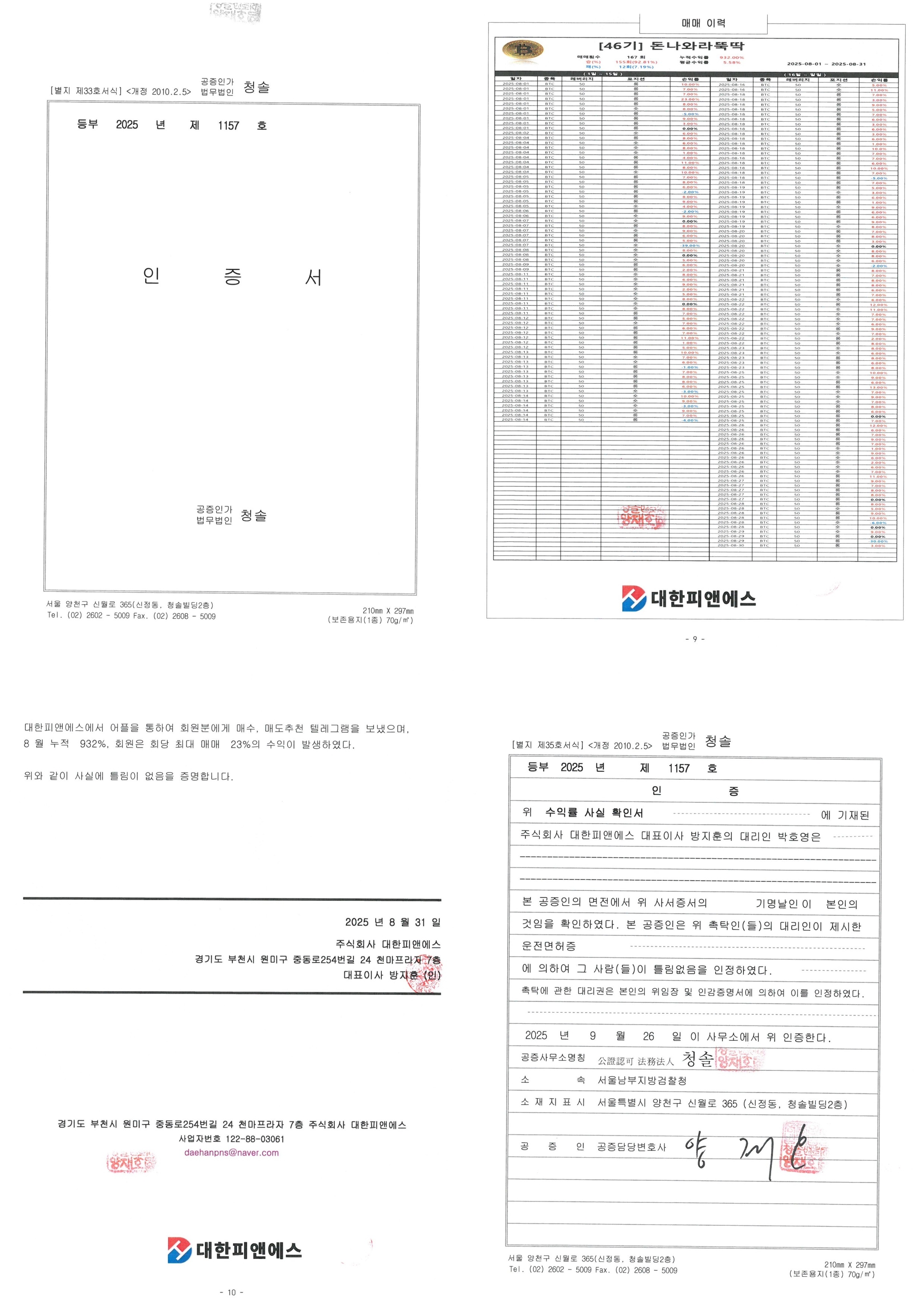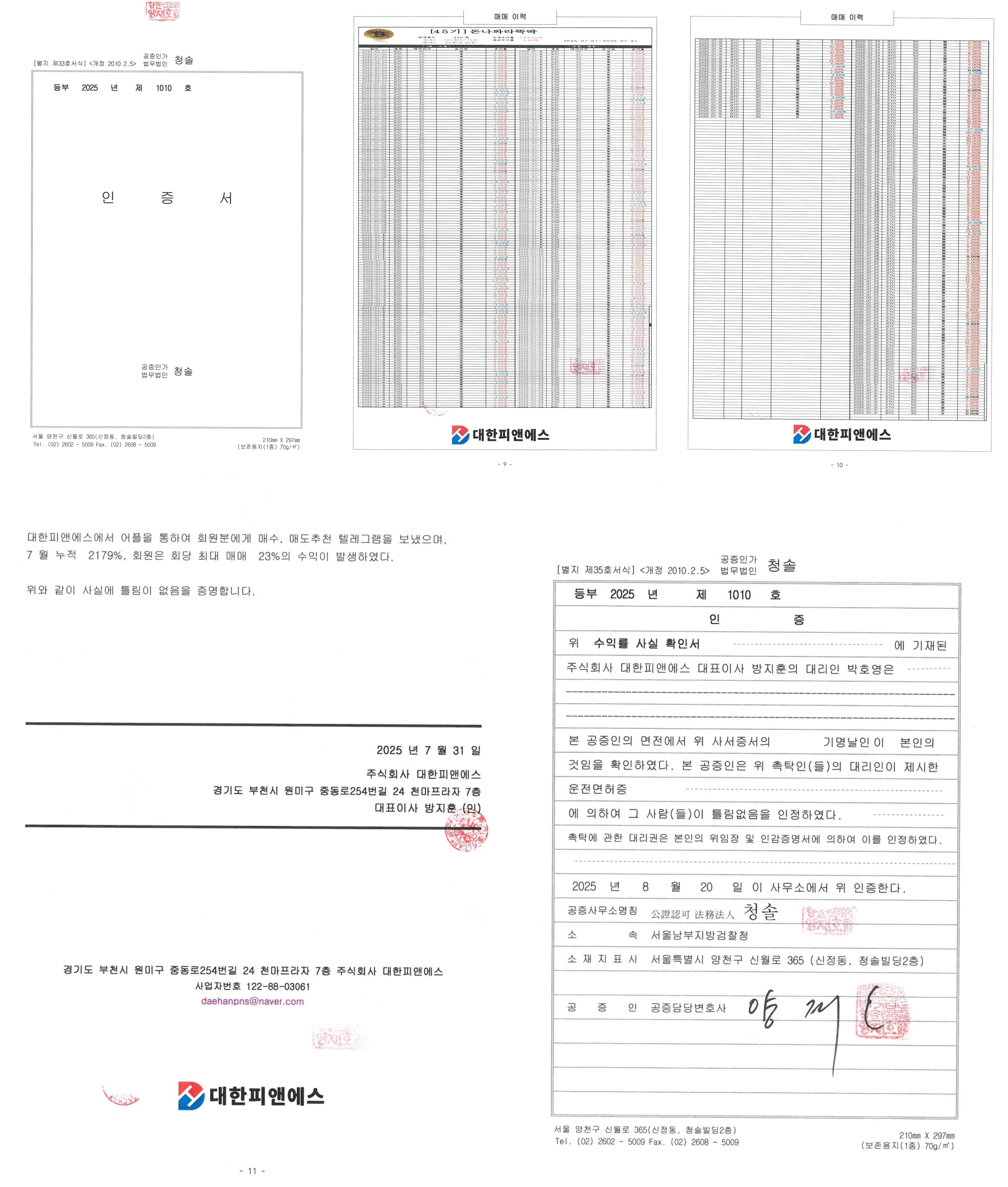 대한피앤에스_수익률 공증_25년 8월